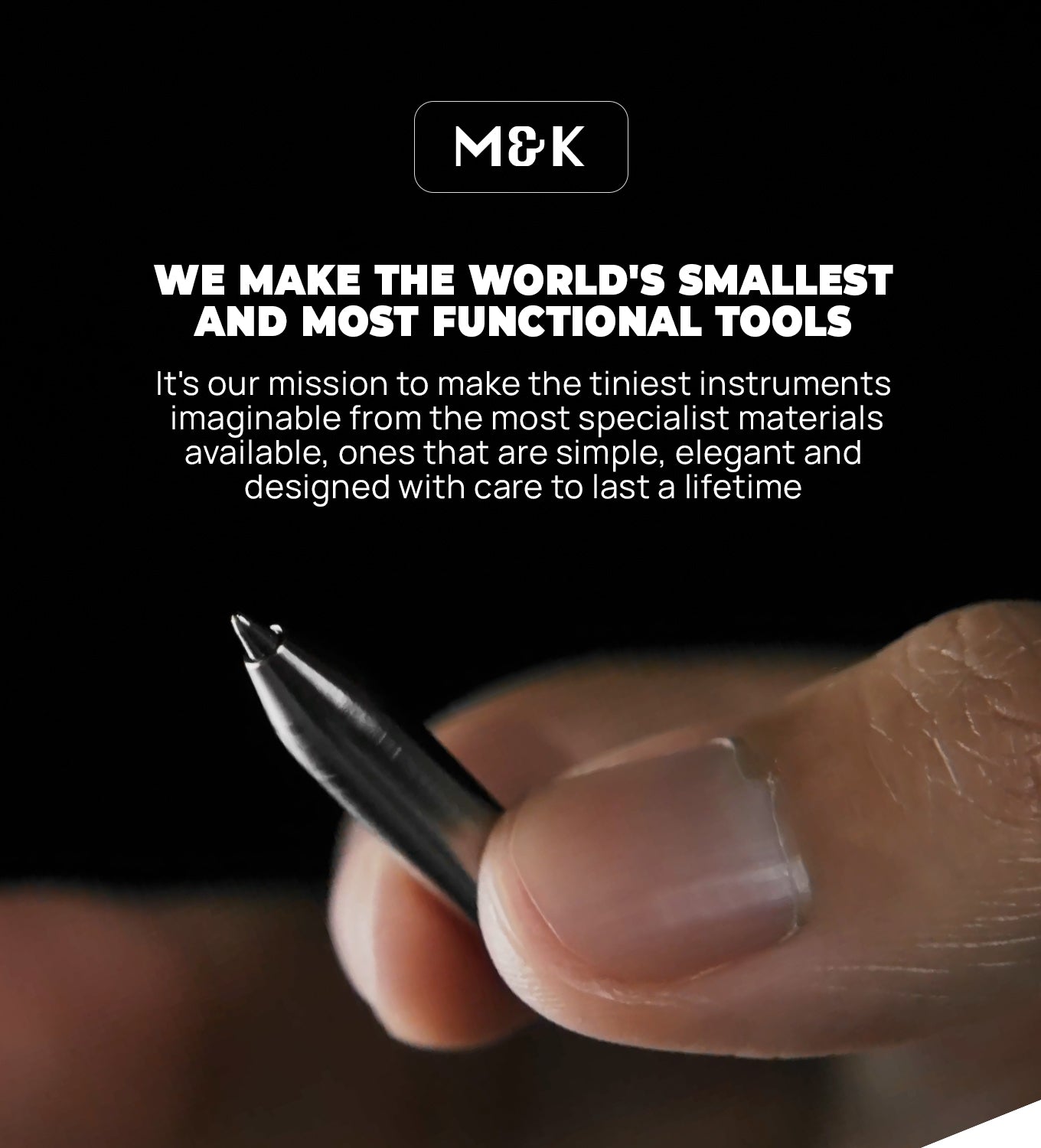 英国の金属加工ツール専門メーカー「Malboro&Kane」社が作った世界最小クラスのミニチュアペン。その重さ僅か"3g"。精密設計で高耐久なので、あなたの人生をスマートにさせる逸品です。