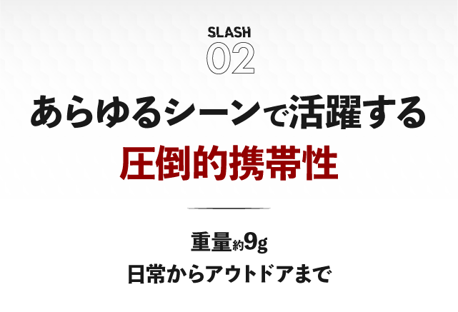 日常やアウトドアの中、いざという時に活躍する最小単位がSlashの形状です。
